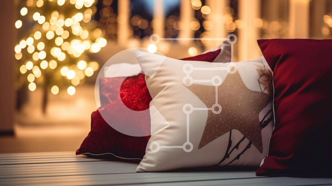 Intra Συλλεκτικό Ξύλινο Παζλ Plywood 4mm - Σχεδιαστικά μαξιλάρια σε σχήμα αστεριού σε ξύλινο πάγκο μπροστά από φωτισμένο χριστουγεννιάτικο δέντρο Σε Ξύλινο Κουτί - Διαστάσεις: 10x10 cm – 25 κομμάτια