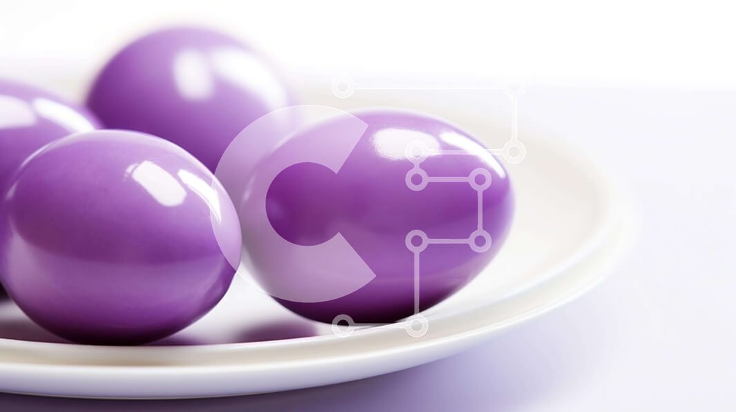 Intra Συλλεκτικό Ξύλινο Παζλ Plywood 4mm - Τέσσερα μοβ αυγά Πάσχας σε ένα άσπρο πιάτο Σε Ξύλινο Κουτί - Διαστάσεις: 10x10 cm – 25 κομμάτια