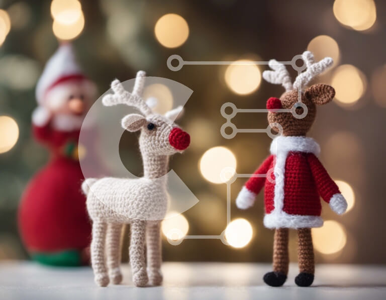 Intra Συλλεκτικό Ξύλινο Παζλ Plywood 4mm - Τάρανδος με κροσέ με ειδώλια Άγιου Βασίλη και Ρούντολφ Σε Ξύλινο Κουτί - Διαστάσεις: 10x10 cm – 25 κομμάτια