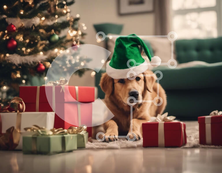 Intra Συλλεκτικό Ξύλινο Παζλ Plywood 4mm - Χρυσός σκύλος με καπέλο Άγιου Βασίλη και δώρα Σε Ξύλινο Κουτί - Διαστάσεις: 10x10 cm – 25 κομμάτια