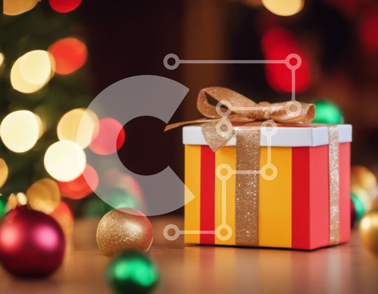 Intra Συλλεκτικό Ξύλινο Παζλ Plywood 4mm - Γιορτινό κουτί δώρου με πολύχρωμα στολίδια Σε Ξύλινο Κουτί - Διαστάσεις: 10x10 cm – 25 κομμάτια