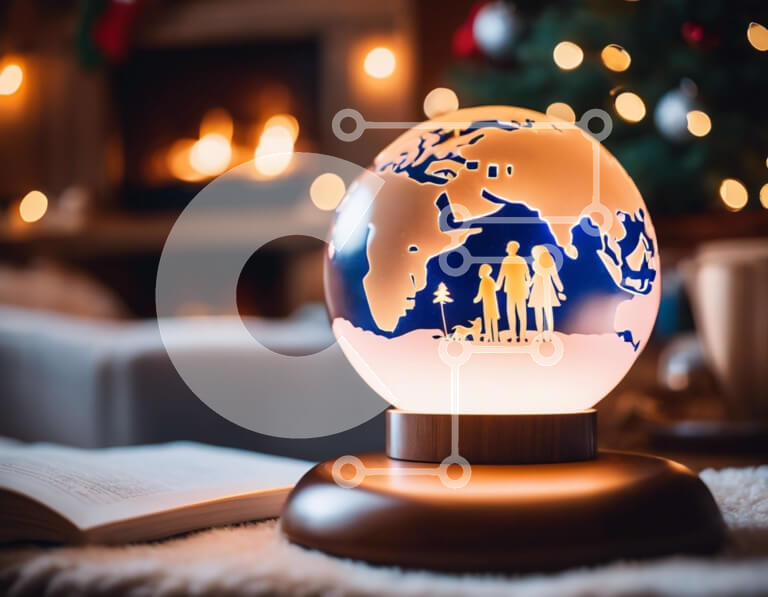 Intra Συλλεκτικό Ξύλινο Παζλ Plywood 4mm - Globe Light στο ανοιχτό βιβλίο με οικογενειακές σιλουέτες Σε Ξύλινο Κουτί - Διαστάσεις: 10x10 cm – 25 κομμάτια