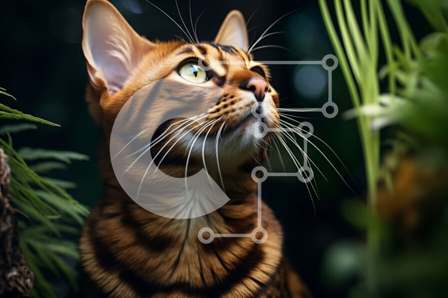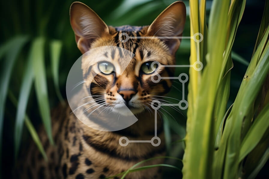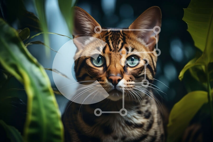 Intra Συλλεκτικό Ξύλινο Παζλ Plywood 4mm - Γάτα Βεγγάλης σε σκηνικό ζούγκλας με πράσινα μάτια Σε Ξύλινο Κουτί - Διαστάσεις: 10x10 cm – 25 κομμάτια