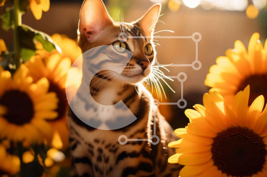 Intra Συλλεκτικό Ξύλινο Παζλ Plywood 4mm - Γάτα Βεγγάλης στα ηλιοτρόπια Σε Ξύλινο Κουτί - Διαστάσεις: 10x10 cm – 25 κομμάτια