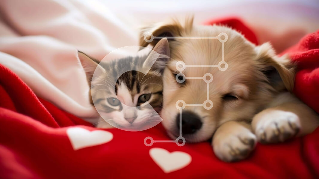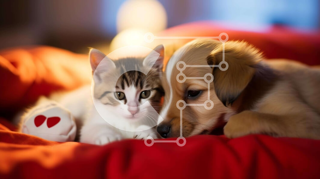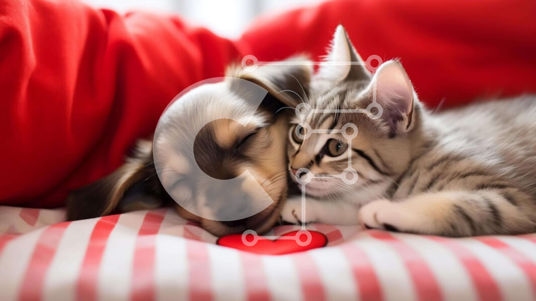 Intra Συλλεκτικό Ξύλινο Παζλ Plywood 4mm - Γάτα και σκύλος στριμώχνονται μαζί στην κόκκινη κουβέρτα Σε Ξύλινο Κουτί - Διαστάσεις: 10x10 cm – 25 κομμάτια