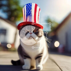 Intra Συλλεκτικό Ξύλινο Παζλ Plywood 4mm - Γάτα που φορά ένα καπέλο με θέμα την αμερικανική σημαία Σε Ξύλινο Κουτί - Διαστάσεις: 10x10 cm – 25 κομμάτια