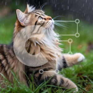 Intra Συλλεκτικό Ξύλινο Παζλ Plywood 4mm - Γάτα που παίζει στη βροχή σε χλοοτάπητα Σε Ξύλινο Κουτί - Διαστάσεις: 10x10 cm – 25 κομμάτια