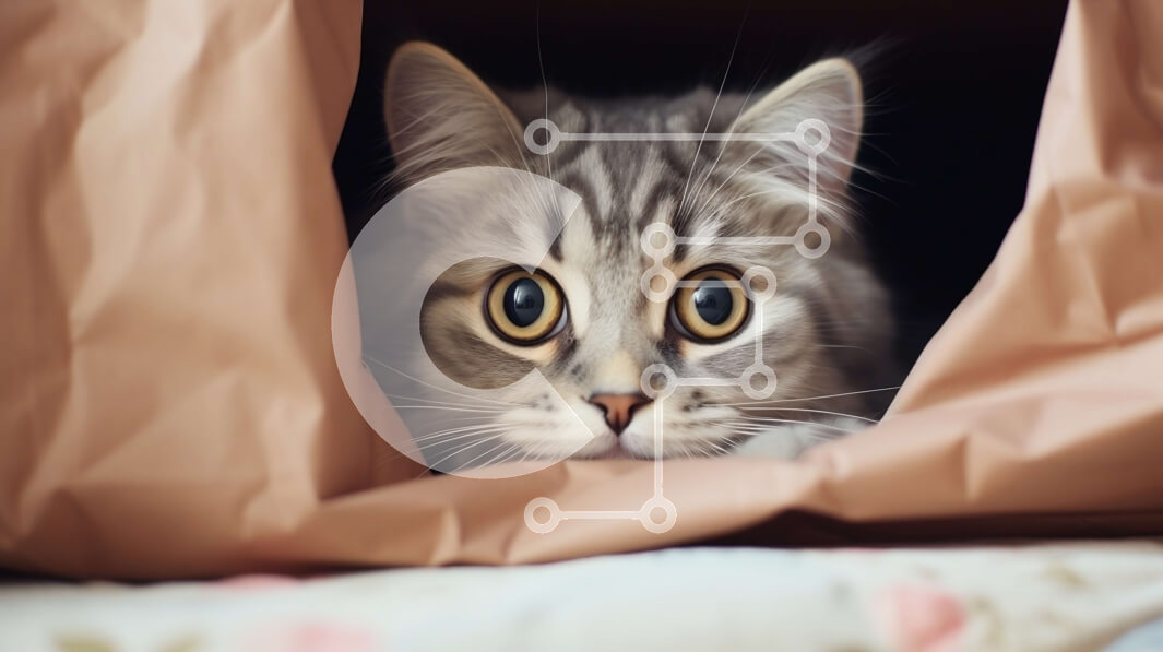 Intra Συλλεκτικό Ξύλινο Παζλ Plywood 4mm - Γάτα που κρυφοκοιτάζει πίσω από ένα κομμάτι καφέ χαρτί Σε Ξύλινο Κουτί - Διαστάσεις: 10x10 cm – 25 κομμάτια