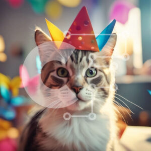 Intra Συλλεκτικό Ξύλινο Παζλ Plywood 4mm - Γάτα που φορά ένα καπέλο γενεθλίων με στολίδια πάρτι στο βάθος Σε Ξύλινο Κουτί - Διαστάσεις: 10x10 cm – 25 κομμάτια