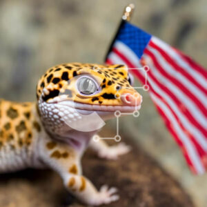 Intra Συλλεκτικό Ξύλινο Παζλ Plywood 4mm - Γκέκο που στηρίζεται στην αμερικανική σημαία Σε Ξύλινο Κουτί - Διαστάσεις: 10x10 cm – 25 κομμάτια