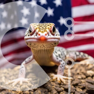 Intra Συλλεκτικό Ξύλινο Παζλ Plywood 4mm - Γκέκο μπροστά από την αμερικανική σημαία Σε Ξύλινο Κουτί - Διαστάσεις: 10x10 cm – 25 κομμάτια