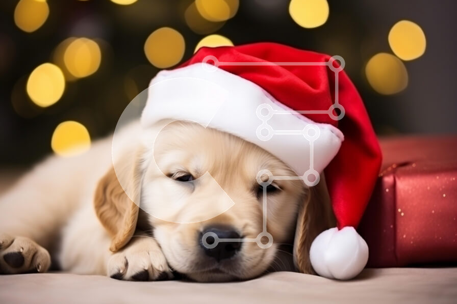 Intra Συλλεκτικό Ξύλινο Παζλ Plywood 4mm - Γκόλντεν Ριτρίβερ κουτάβι με καπέλο Άγιου Βασίλη Σε Ξύλινο Κουτί - Διαστάσεις: 10x10 cm – 25 κομμάτια