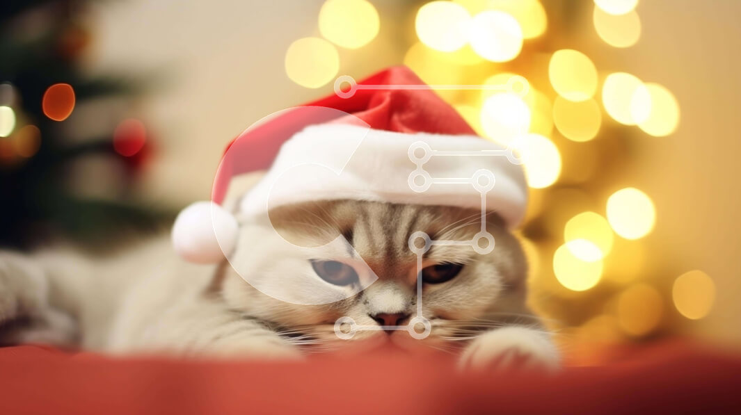Intra Συλλεκτικό Ξύλινο Παζλ Plywood 4mm - Γκρίζο γατάκι που κοιμάται με καπέλο Άγιου Βασίλη στο διακοσμητικό παιχνίδι χιονάνθρωπος Σε Ξύλινο Κουτί - Διαστάσεις: 10x10 cm – 25 κομμάτια