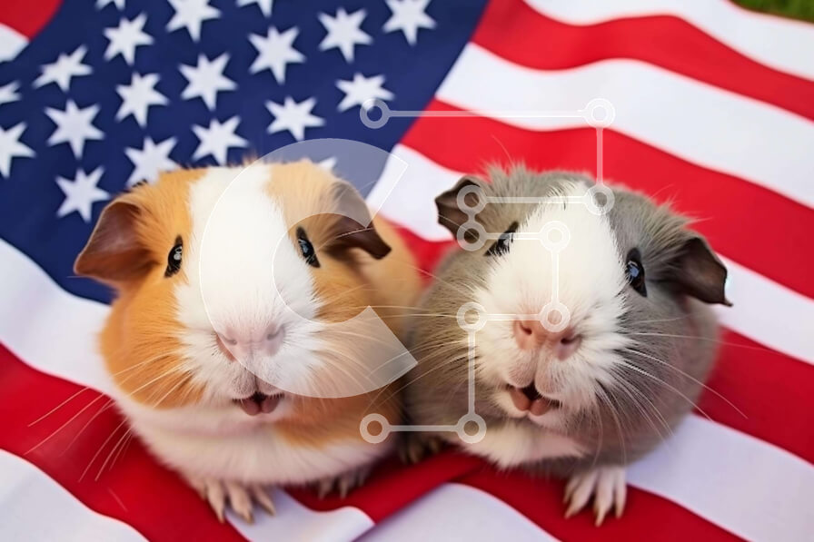 Intra Συλλεκτικό Ξύλινο Παζλ Plywood 4mm - Δύο χαμογελαστά ινδικά χοιρίδια με αμερικανική σημαία Σε Ξύλινο Κουτί - Διαστάσεις: 10x10 cm – 25 κομμάτια