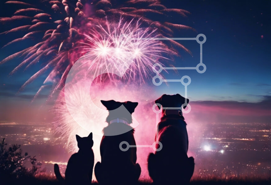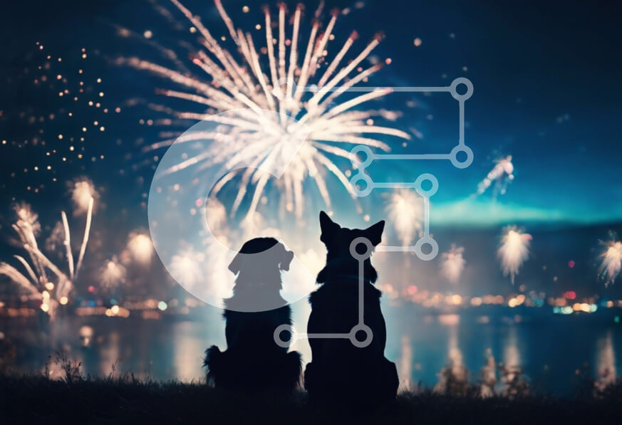 Intra Συλλεκτικό Ξύλινο Παζλ Plywood 4mm - Δύο σκυλιά που παρακολουθούν πυροτεχνήματα στο λόφο με θέα στην πόλη Σε Ξύλινο Κουτί - Διαστάσεις: 10x10 cm – 25 κομμάτια