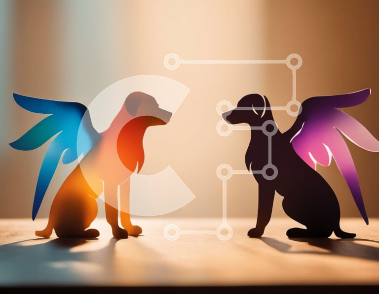 Intra Συλλεκτικό Ξύλινο Παζλ Plywood 4mm - Δύο σκυλιά, ένα με φτερά και ένα χωρίς Σε Ξύλινο Κουτί - Διαστάσεις: 10x10 cm – 25 κομμάτια