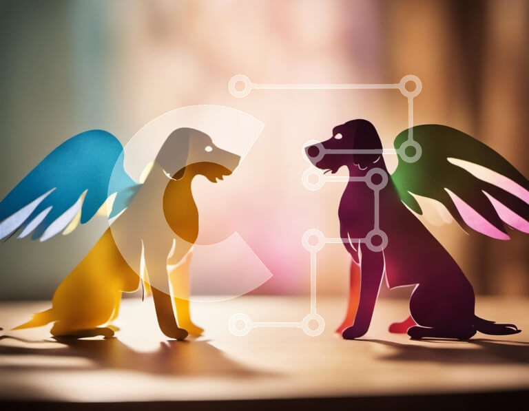 Intra Συλλεκτικό Ξύλινο Παζλ Plywood 4mm - Δύο σκυλιά με φτερά σε ξύλινη επιφάνεια Σε Ξύλινο Κουτί - Διαστάσεις: 10x10 cm – 25 κομμάτια