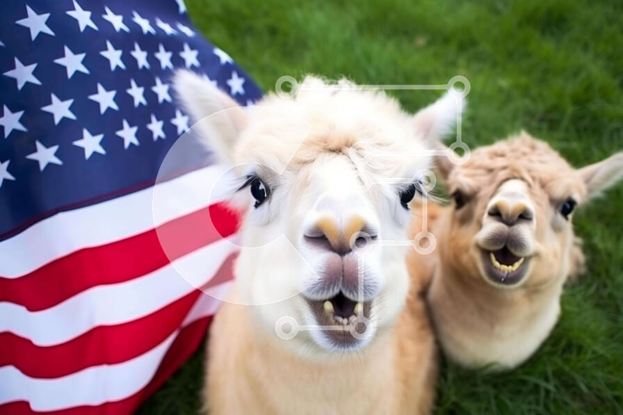 Intra Συλλεκτικό Ξύλινο Παζλ Plywood 4mm - Δύο χαμογελαστά αλπακά με αμερικανική σημαία Σε Ξύλινο Κουτί - Διαστάσεις: 10x10 cm – 25 κομμάτια