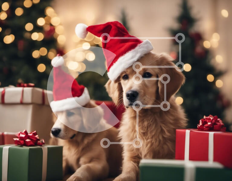 Intra Συλλεκτικό Ξύλινο Παζλ Plywood 4mm - Δύο σκυλιά Γκόλντεν Ριτρίβερ με καπέλα Άγιου Βασίλη με χριστουγεννιάτικα δώρα Σε Ξύλινο Κουτί - Διαστάσεις: 10x10 cm – 25 κομμάτια