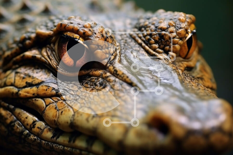 Intra Συλλεκτικό Ξύλινο Παζλ Plywood 4mm - Δυσοίωνη εικόνα του κεφαλιού ενός κροκόδειλου με αιχμηρά δόντια και κοφτερά μάτια που κοιτάζει κατευθείαν την κάμερα Σε Ξύλινο Κουτί - Διαστάσεις: 10x10 cm – 25 κομμάτια