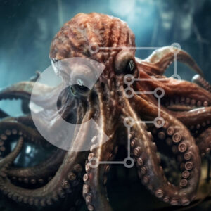 Intra Συλλεκτικό Ξύλινο Παζλ Plywood 4mm - Εκπληκτική ασπρόμαυρη εικόνα ενός χταποδιού που κολυμπά στον ωκεανό Σε Ξύλινο Κουτί - Διαστάσεις: 10x10 cm – 25 κομμάτια