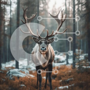 Intra Συλλεκτικό Ξύλινο Παζλ Plywood 4mm - Ειρηνική και γαλήνια εικόνα του αρσενικού τάρανδου στο χιονισμένο δάσος Σε Ξύλινο Κουτί - Διαστάσεις: 10x10 cm – 25 κομμάτια