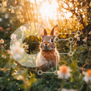 Intra Συλλεκτικό Ξύλινο Παζλ Plywood 4mm - Ειρηνική εικόνα ενός κουνελιού που κάθεται σε ένα χωράφι με αγριολούλουδα στο ηλιοβασίλεμα Σε Ξύλινο Κουτί - Διαστάσεις: 10x10 cm – 25 κομμάτια