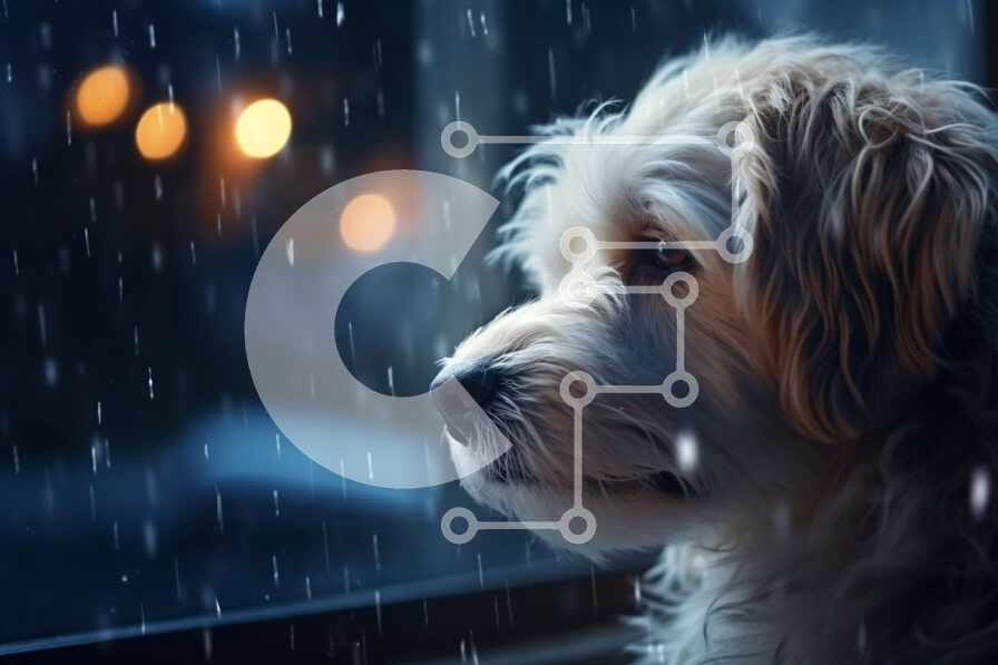 Intra Συλλεκτικό Ξύλινο Παζλ Plywood 4mm - Ειρηνική και στοχαστική εικόνα του σκύλου Golden Retriever που κοιτάζει έξω από το παράθυρο τη βροχερή μέρα Σε Ξύλινο Κουτί - Διαστάσεις: 10x10 cm – 25 κομμάτια