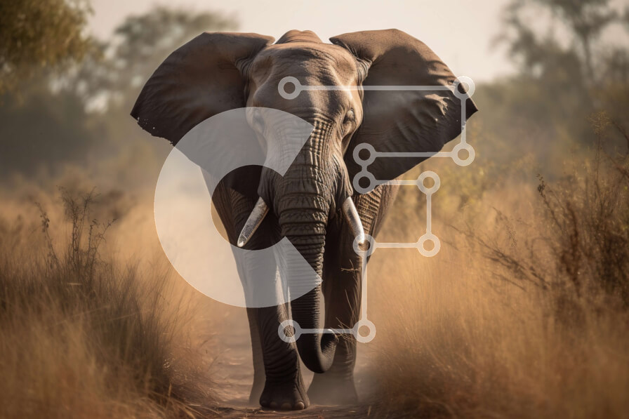 Intra Συλλεκτικό Ξύλινο Παζλ Plywood 4mm - Εκπληκτική εικόνα ενός ελέφαντα σε ένα ξερό λιβάδι Σε Ξύλινο Κουτί - Διαστάσεις: 10x10 cm – 25 κομμάτια