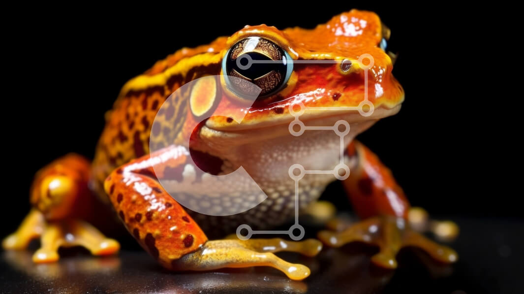 Intra Συλλεκτικό Ξύλινο Παζλ Plywood 4mm - Εκπληκτική εικόνα ενός κόκκινου και κίτρινου βατράχου Poison Dart στον βιότοπό του Σε Ξύλινο Κουτί - Διαστάσεις: 10x10 cm – 25 κομμάτια