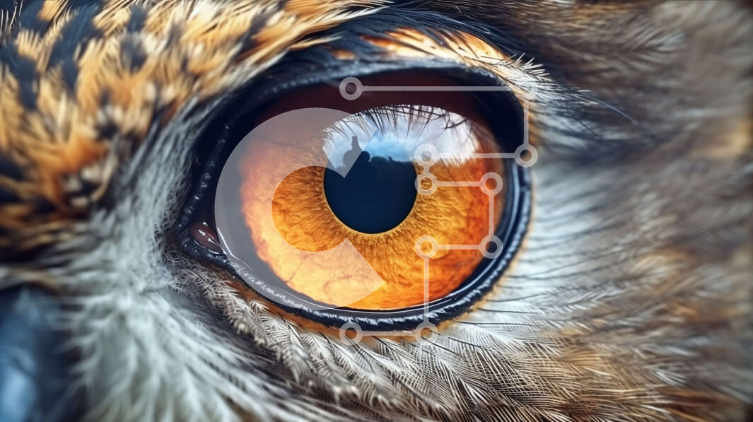 Intra Συλλεκτικό Ξύλινο Παζλ Plywood 4mm - Εκπληκτική εικόνα του ματιού μιας κουκουβάγιας με πορτοκαλί ίριδες και μαύρες κόρες Σε Ξύλινο Κουτί - Διαστάσεις: 10x10 cm – 25 κομμάτια