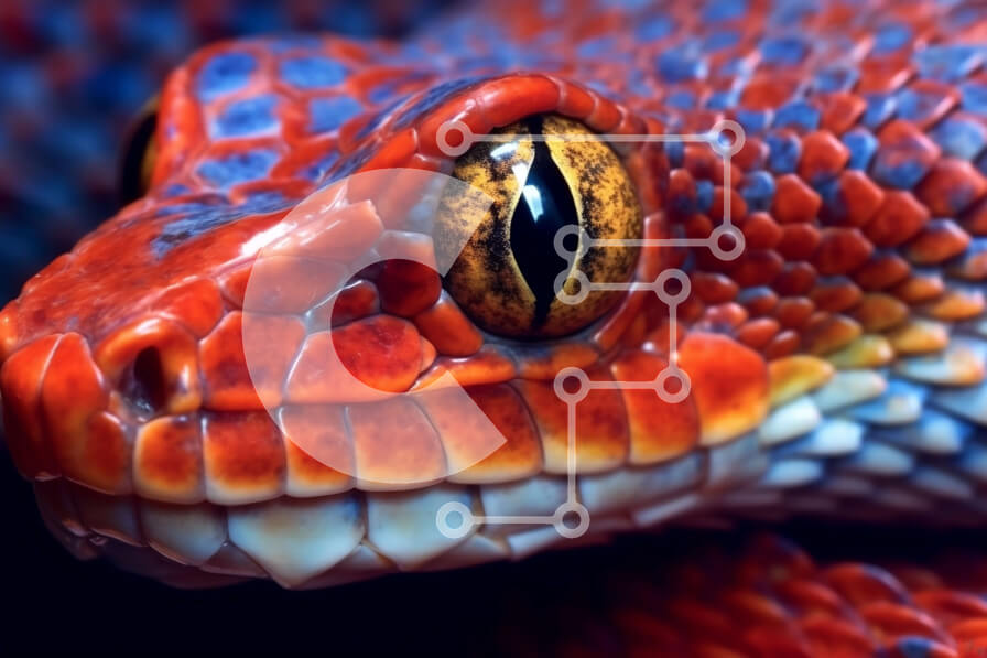 Intra Συλλεκτικό Ξύλινο Παζλ Plywood 4mm - Εκπληκτική κινηματογράφηση σε πρώτο πλάνο ενός πολύχρωμου φιδιού με μαύρες κηλίδες Σε Ξύλινο Κουτί - Διαστάσεις: 10x10 cm – 25 κομμάτια