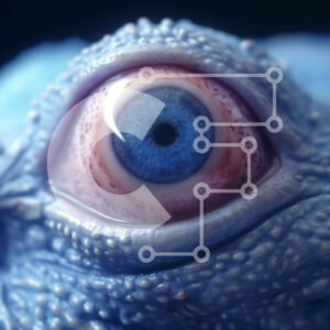 Intra Συλλεκτικό Ξύλινο Παζλ Plywood 4mm - Εκπληκτική κινηματογράφηση σε πρώτο πλάνο ενός μπλε ματιού ιγκουάνα Σε Ξύλινο Κουτί - Διαστάσεις: 10x10 cm – 25 κομμάτια