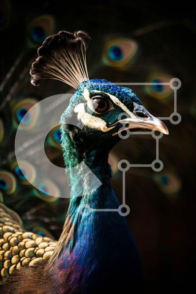 Intra Συλλεκτικό Ξύλινο Παζλ Plywood 4mm - Εκπληκτική κινηματογράφηση σε πρώτο πλάνο με το κεφάλι και τα φτερά ενός παγωνιού Σε Ξύλινο Κουτί - Διαστάσεις: 10x10 cm – 25 κομμάτια
