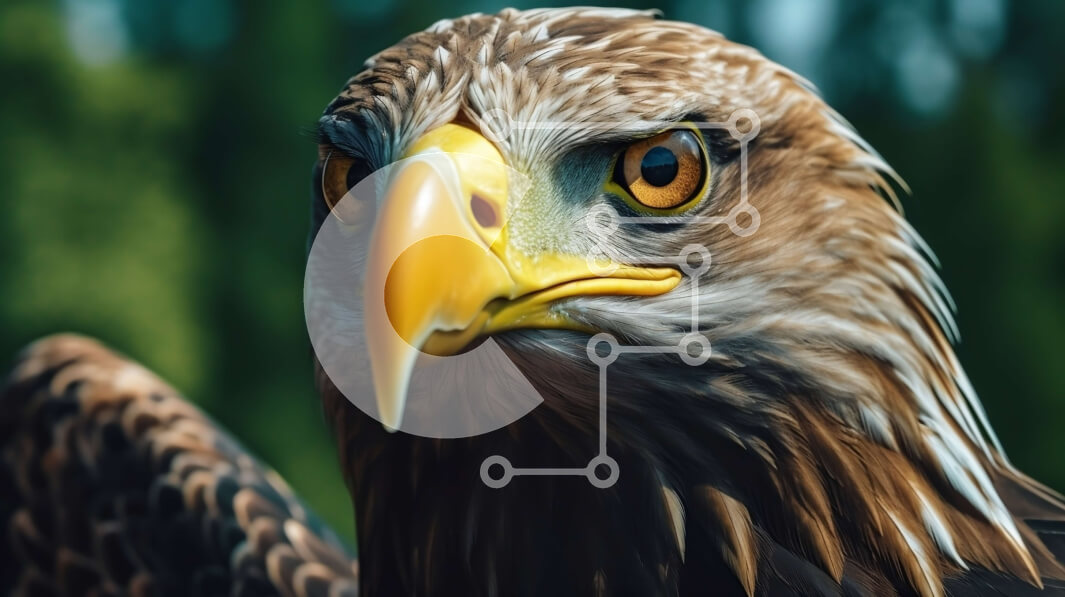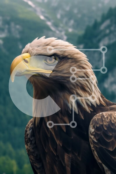 Intra Συλλεκτικό Ξύλινο Παζλ Plywood 4mm - Εκπληκτική κοντινή πλάνο του κεφαλιού του αετού με ανοιχτά φτερά στο καταπράσινο δάσος Σε Ξύλινο Κουτί - Διαστάσεις: 10x10 cm – 25 κομμάτια