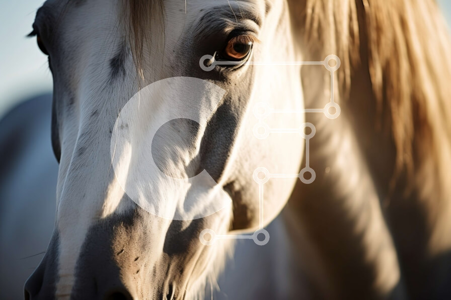 Intra Συλλεκτικό Ξύλινο Παζλ Plywood 4mm - Εκπληκτική κοντινή πλάνο του προσώπου ενός λευκού αλόγου με μακριά χαίτη και καστανά μάτια Σε Ξύλινο Κουτί - Διαστάσεις: 10x10 cm – 25 κομμάτια