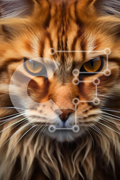 Intra Συλλεκτικό Ξύλινο Παζλ Plywood 4mm - Εκπληκτική κοντινή πλάνο του προσώπου μιας γάτας με κίτρινα μάτια και αφράτη γούνα Σε Ξύλινο Κουτί - Διαστάσεις: 10x10 cm – 25 κομμάτια