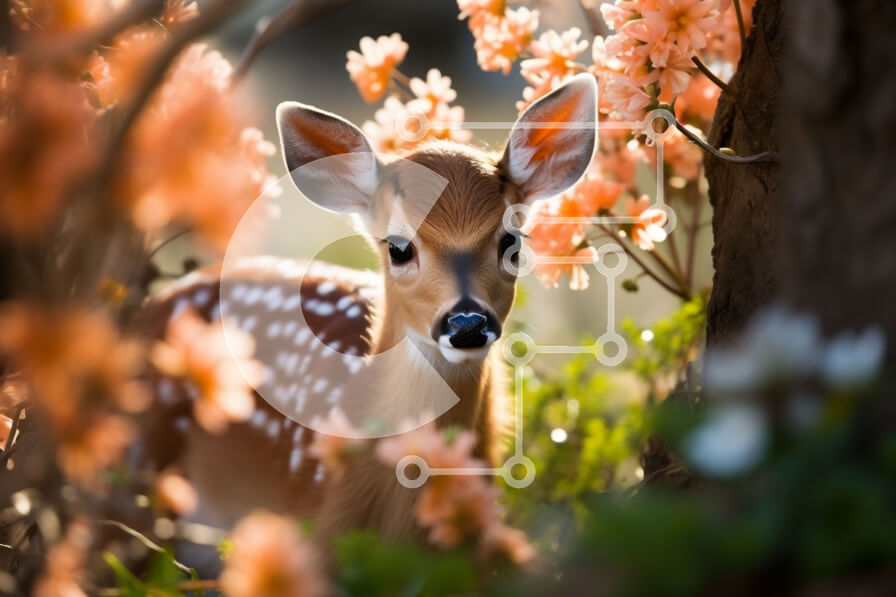 Intra Συλλεκτικό Ξύλινο Παζλ Plywood 4mm - Ελαφάκι που κρυφοκοιτάζει πίσω από τον θάμνο με ροζ λουλούδια Σε Ξύλινο Κουτί - Διαστάσεις: 10x10 cm – 25 κομμάτια