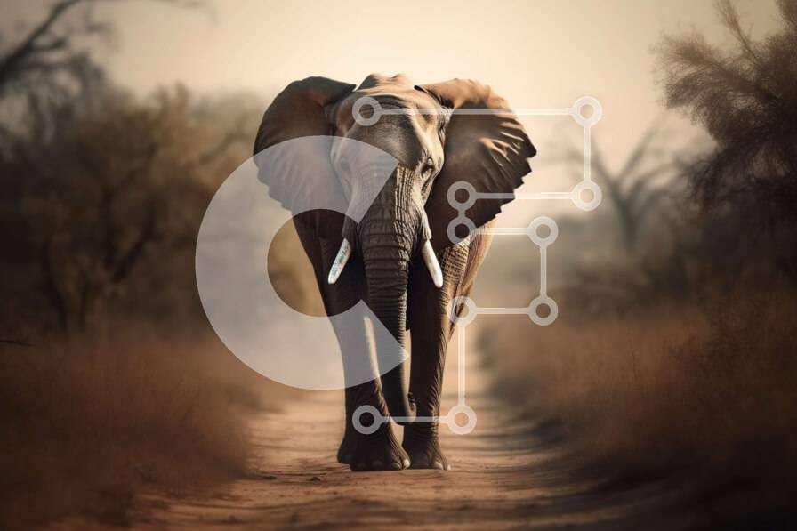 Intra Συλλεκτικό Ξύλινο Παζλ Plywood 4mm - Ελέφαντας που περπατά σε ένα καταφύγιο άγριας ζωής σε έναν χωματόδρομο Σε Ξύλινο Κουτί - Διαστάσεις: 10x10 cm – 25 κομμάτια