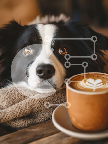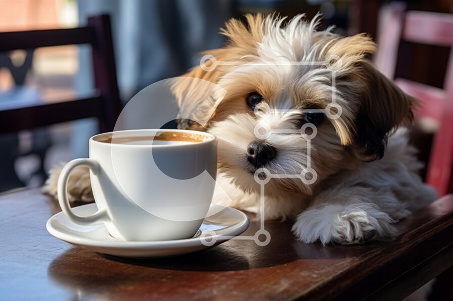 Intra Συλλεκτικό Ξύλινο Παζλ Plywood 4mm - Ένα χαριτωμένο σκυλί και ένας καφές σε ένα τραπέζι Σε Ξύλινο Κουτί - Διαστάσεις: 10x10 cm – 25 κομμάτια
