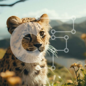 Intra Συλλεκτικό Ξύλινο Παζλ Plywood 4mm - Snow Leopard Cub σε μια χλοώδη περιοχή με βουνά και ποτάμι Σε Ξύλινο Κουτί - Διαστάσεις: 10x10 cm – 25 κομμάτια
