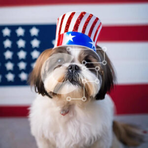 Intra Συλλεκτικό Ξύλινο Παζλ Plywood 4mm - Ευτυχισμένος σκύλος με πατριωτική ενδυμασία Σε Ξύλινο Κουτί - Διαστάσεις: 10x10 cm – 25 κομμάτια