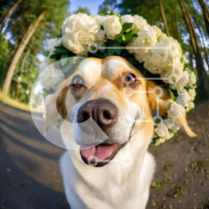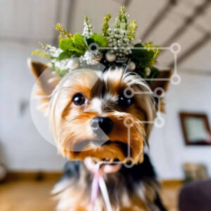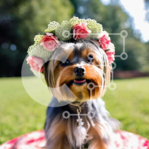 Intra Συλλεκτικό Ξύλινο Παζλ Plywood 4mm - Ευτυχισμένος σκύλος με λουλουδάτο στέμμα που απολαμβάνει σε εξωτερικούς χώρους Σε Ξύλινο Κουτί - Διαστάσεις: 10x10 cm – 25 κομμάτια