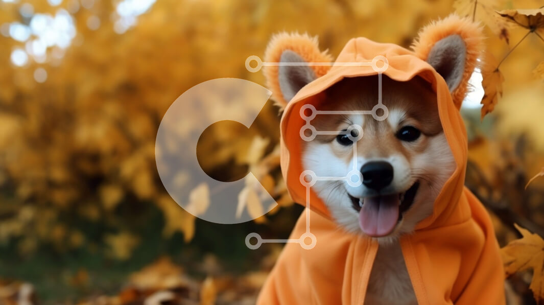 Intra Συλλεκτικό Ξύλινο Παζλ Plywood 4mm - Ευτυχισμένος σκύλος με πορτοκαλί κουκούλα που κάθεται στα φθινοπωρινά φύλλα Σε Ξύλινο Κουτί - Διαστάσεις: 10x10 cm – 25 κομμάτια