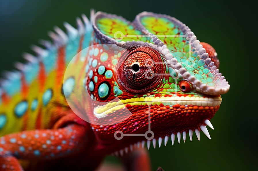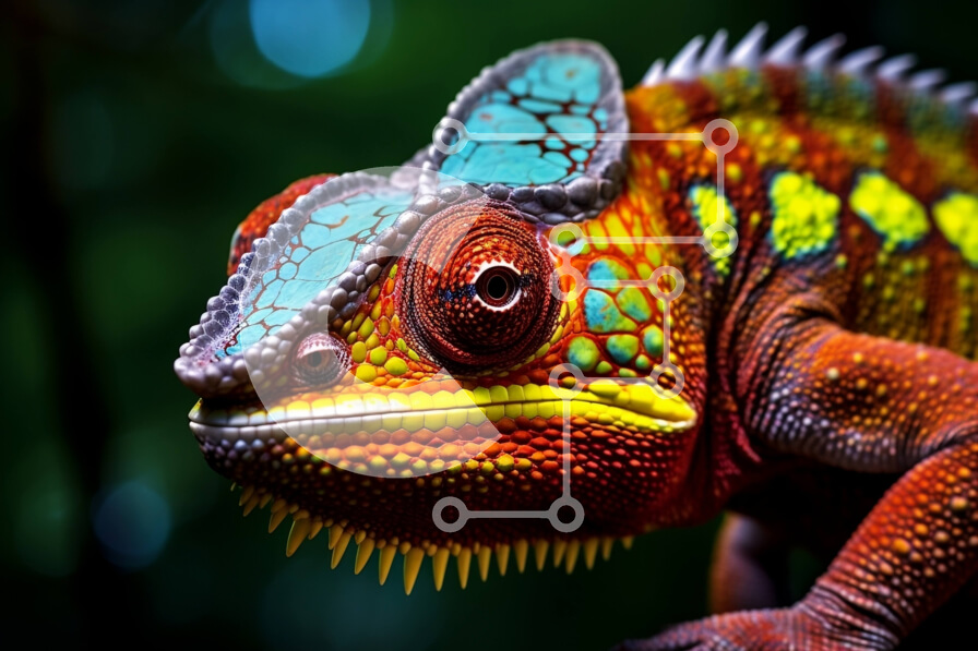 Intra Συλλεκτικό Ξύλινο Παζλ Plywood 4mm - Ζωντανή εικόνα ενός πολύχρωμου χαμαιλέοντα σε ένα κλαδί με πολύχρωμα λουλούδια στο φόντο Σε Ξύλινο Κουτί - Διαστάσεις: 10x10 cm – 25 κομμάτια
