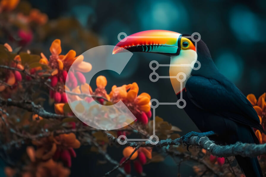 Intra Συλλεκτικό Ξύλινο Παζλ Plywood 4mm - Ζωντανή εικόνα ενός Τουκάν σε μια πολύχρωμη ζούγκλα Σε Ξύλινο Κουτί - Διαστάσεις: 10x10 cm – 25 κομμάτια