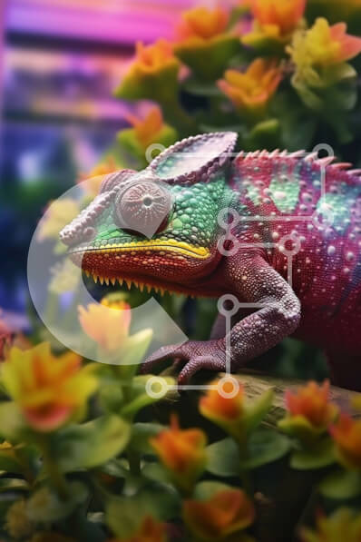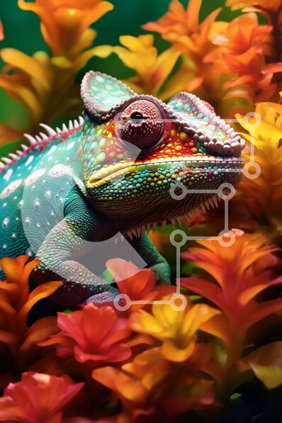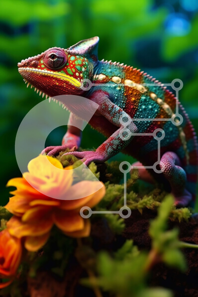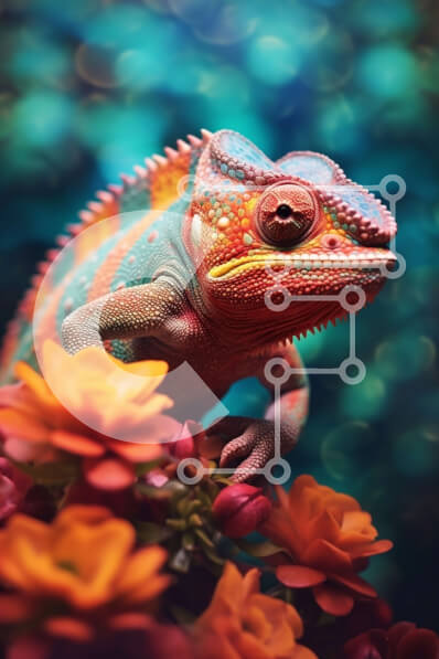 Intra Συλλεκτικό Ξύλινο Παζλ Plywood 4mm - Ζωντανή εικόνα ενός πολύχρωμου χαμαιλέοντα με όμορφα λουλούδια στο φόντο Σε Ξύλινο Κουτί - Διαστάσεις: 10x10 cm – 25 κομμάτια