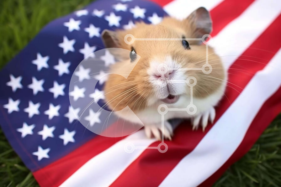 Intra Συλλεκτικό Ξύλινο Παζλ Plywood 4mm - Ινδικά χοιρίδια στο γρασίδι με αμερικανική σημαία Σε Ξύλινο Κουτί - Διαστάσεις: 10x10 cm – 25 κομμάτια