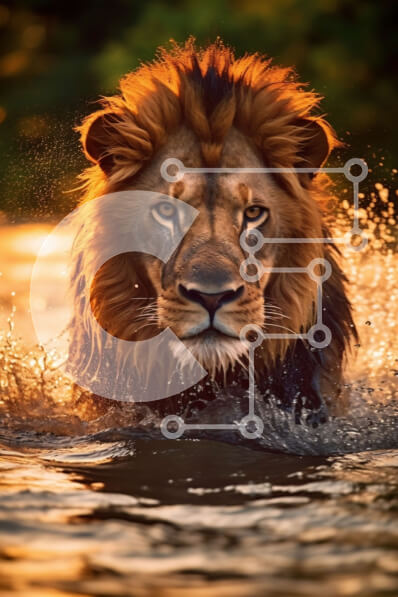 Intra Συλλεκτικό Ξύλινο Παζλ Plywood 4mm - Ισχυρή εικόνα ενός λιονταριού στο νερό Σε Ξύλινο Κουτί - Διαστάσεις: 10x10 cm – 25 κομμάτια