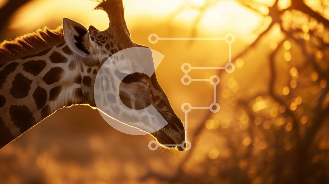 Intra Συλλεκτικό Ξύλινο Παζλ Plywood 4mm - Καμηλοπάρδαλη σε ένα χορταριασμένο χωράφι στο ηλιοβασίλεμα Σε Ξύλινο Κουτί - Διαστάσεις: 10x10 cm – 25 κομμάτια